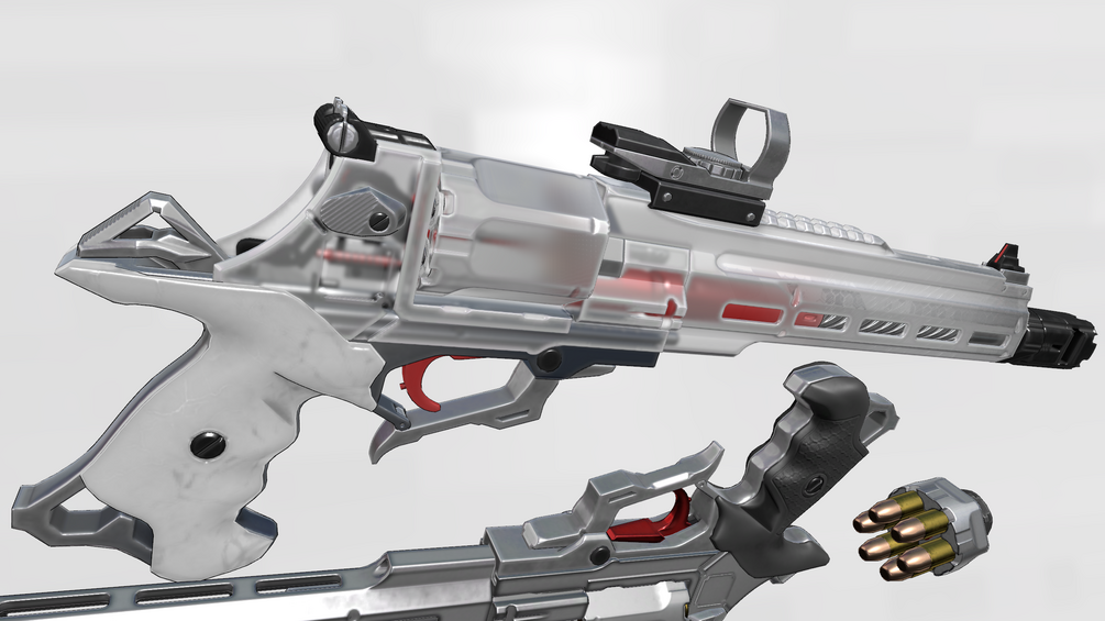 This is a semi-automatic revolver featuring a transparent upper receiver and cylinder. (Type A only)
